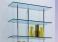 This contemporary glass shelving unit has 12mm thick transparent glass shelves, with 3 metal stainless steel legs. There are two versions available: a five shelf unit 151cm high and a six shelf unit 183cm high, both with two different width options.