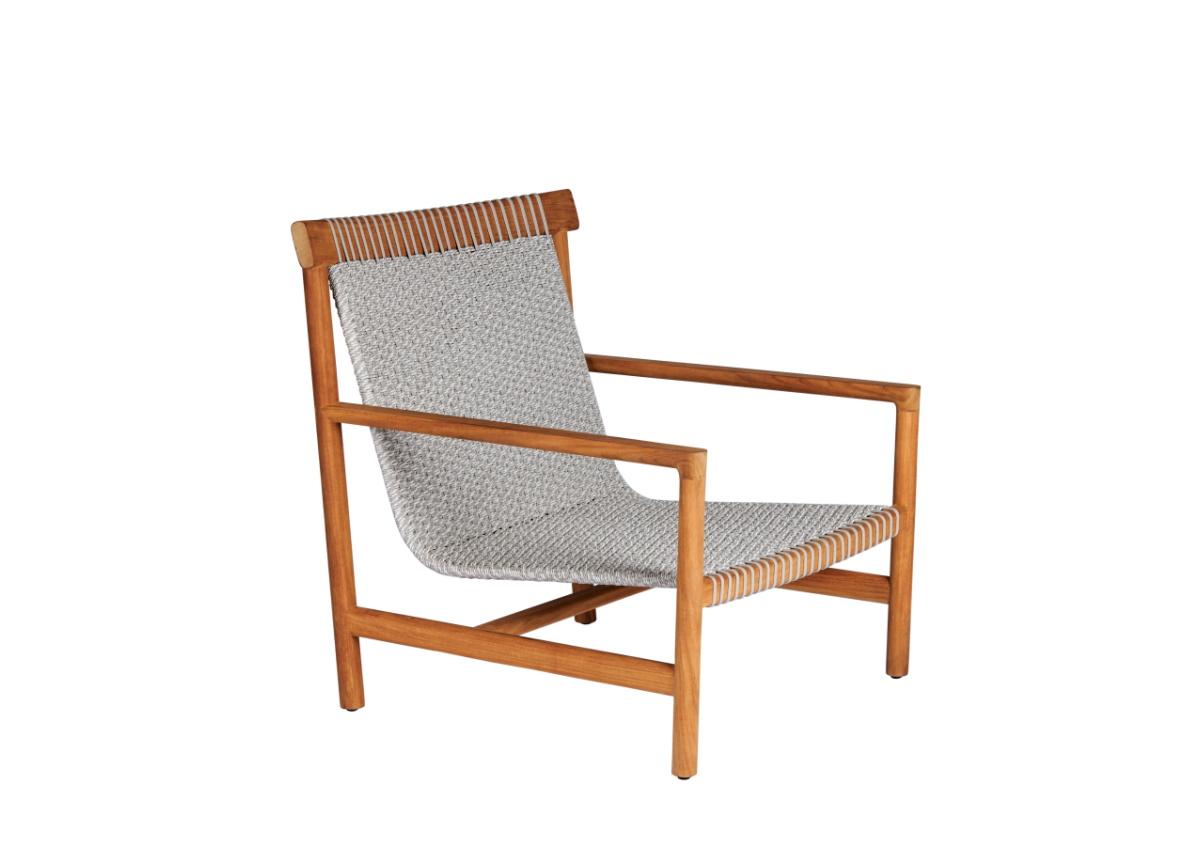 Inspired by the Amanu atoll in French Polynesia, the Amanu collection which includes chairs and tables cleverly combines comfort and sustainability in a timeless look inspired by interior qualities and finishes.This extremely comfortable lounge chair has a seamless seat and backrest formed from an elegant sweep of woven Canax® in a soft linen shade. The seat is suspended from a solid teak slimline frame for a look that is light yet substantial, floating yet supported.