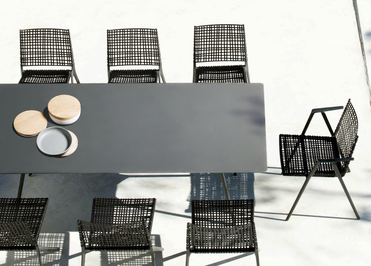 The Branch garden dining table is designed by Altherr Lievore Molina for contemporary outdoor furniture specialists, Tribu.