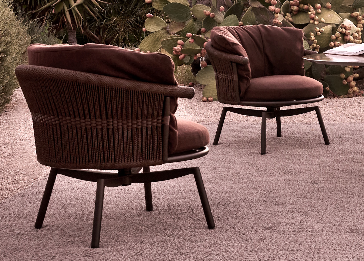 The Tribu Cesta lounge chair by Monica Armani has an incredibly practical 360-degree swivel base making it perfect for relaxed groupings, garden dining, and intimate conversations.