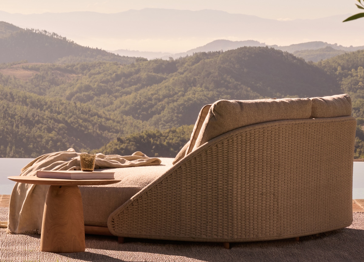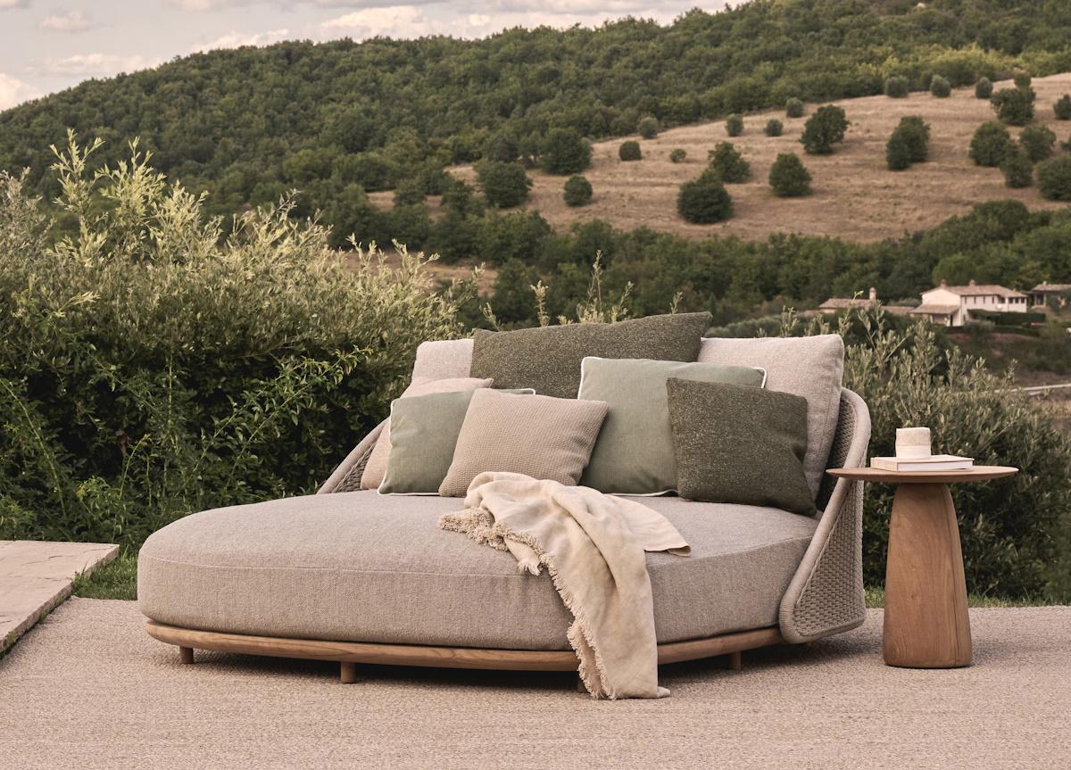 The Tribu Elio garden daybed by Yabu Pushelberg captures the essence of outdoor lounging. Part of an expanded Elio collection introducing new sofas, modular elements, and poufs each with the softly rounded silhouette of the original series but adding lower profiles and graceful curves evoking the beauty of water-smoothed pebbles. Every element is crafted to prioritise comfort and versatility, blending organic shapes with modern sophistication.