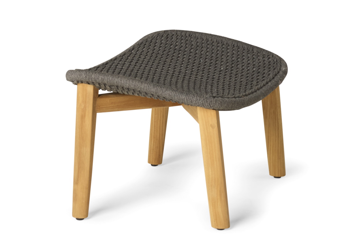 Hand-woven Tricord rope is used for the footrest, creating a rich gradient effect by weaving multiple colours of yarn into one strand. This technique makes each piece of furniture one-of-a-kind. The legs are made from A-grade natural teak.