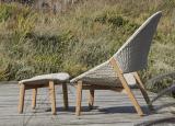 The strong chair frame is made from A-grade natural teak which supports the seating shell through the back legs. Seats are hand-woven in Tricord rope, creating a rich gradient effect by weaving multiple colours of yarn into one strand. This technique makes each piece of furniture one-of-a-kind.