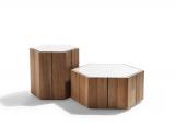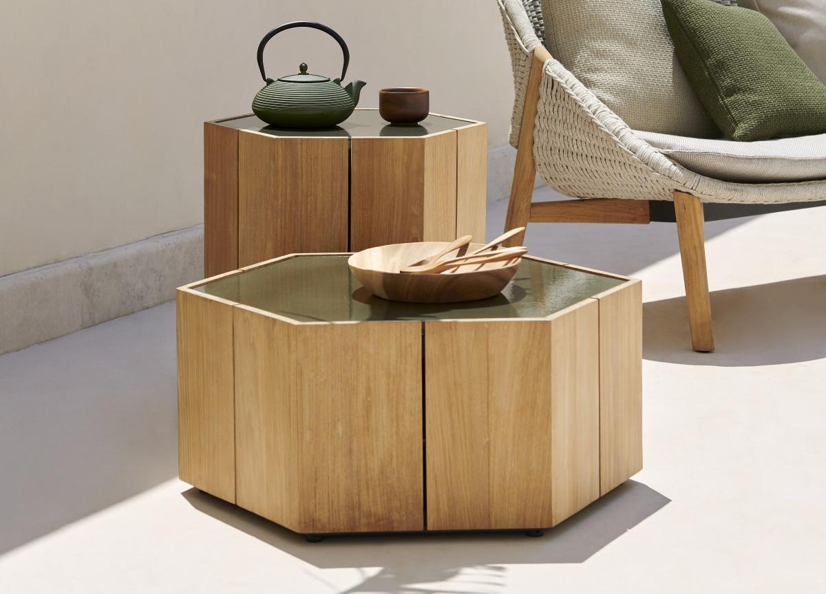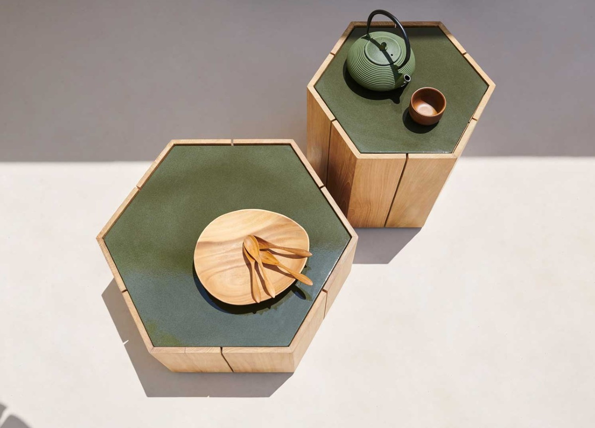 The Tribu Hexagon garden coffee table by Marc Merckx takes its inspiration from the rugged basalt columns of the Giants Causeway in Northern Ireland. The table comes in a variety of heights and sizes, just like the basalt columns, and makes a strong statement when grouped together.