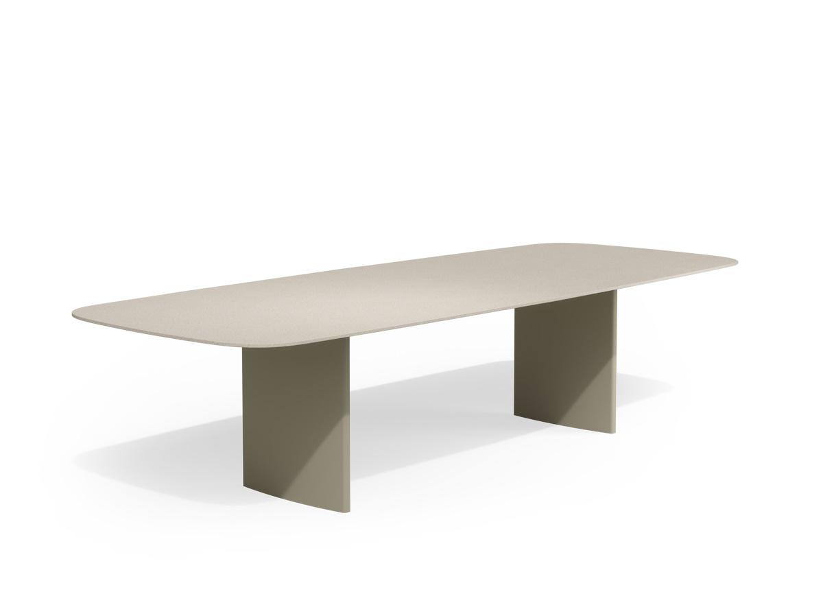 The Tribu Lucca dining table by Studio Segers is available in two sizes with a table top in garden suitable ceramic, combined with stunning shield shaped supports making it a timeless centrepiece to complement any outdoor setting.