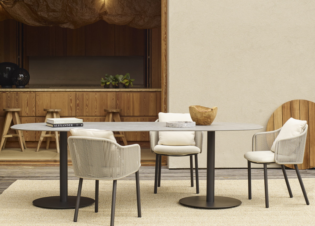 The T-Table dining table by Marc Merckx from Tribu has a beautiful large oval table top and is perfect for terraces, patios, or even poolside! Designed and made in Belgium.