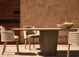 Available in three sizes, the Tao table is a lesson in perfectly balanced contrasts – bold sculptural pedestals and slim tabletops that are pleasing to the touch. Designer Monica Armani uses refined lightened concrete that evokes a look of elegant solidity. The central pedestal supports a finely milled round or oval tabletop, invitingly extending outdoor experiences.
