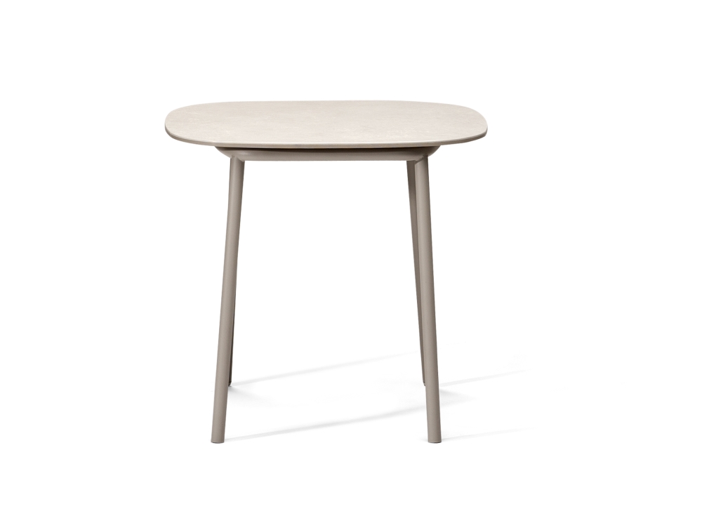 The table top is ceramic, laminated on glass and is completely scratch, UV, water and weather proof, but has a delicate cloudy pattern giving it a subtle, luxurious appearance. There are several different ceramic colours to choose from, of which the sabbia and scisto ceramics may feature delicate veins.