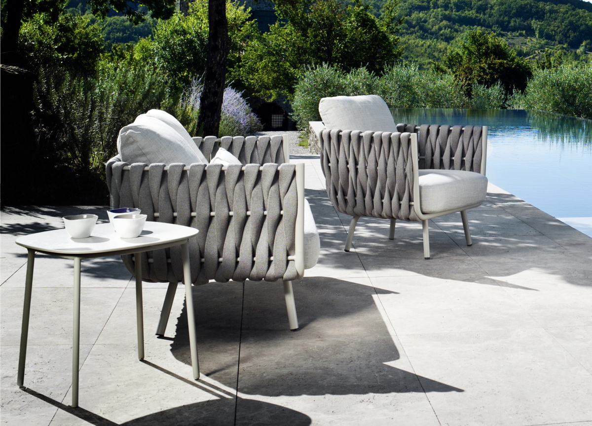 The Tosca Garden Side Table perfectly complements the rest of the Tosca Collection, all designed by Monica Armani for luxury outdoor furniture experts, Tribu.