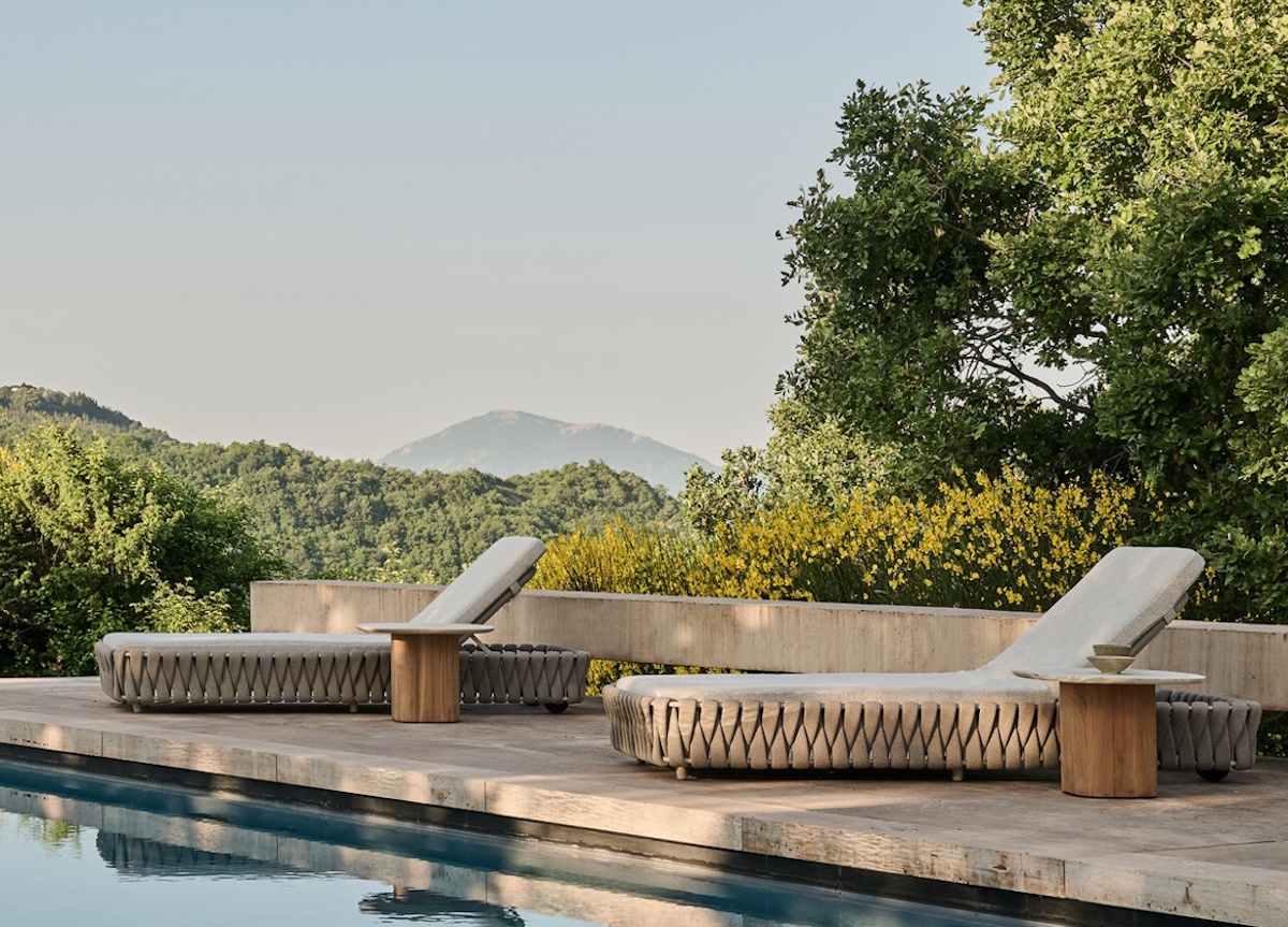 The soft, inviting Tosca Sun Lounger is from high end garden furniture brand, Tribu, a highly regarded Belgian brand, who invited Monica Armani to design this collection.