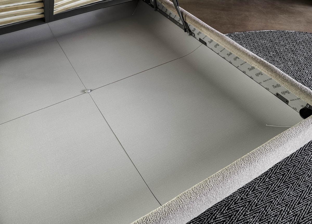 Ortopedic Plus slats (split or in one piece) with a metal frame are included and for the storage base there are two lift options both with strong reinforced pistons; firstly, the base can be lifted to sit horizontally above the frame making changing the sheets extremely easy. Secondly, it lifts up from the headboard end for easy access to the storage area. Please note that some of the detailed images show the storage base on other Twils beds.