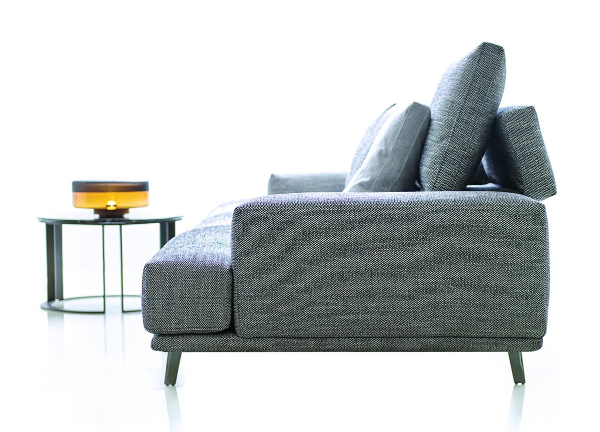 The Upper sofa is one of our most popular sofas due to its flexibility, comfort & modern design. Finished with a contrasting stitching detail around the cushions, with metal feet are made in black chrome. Additionally, the Upper sofa has a headrest that flips up so the top cushion can be pushed up.