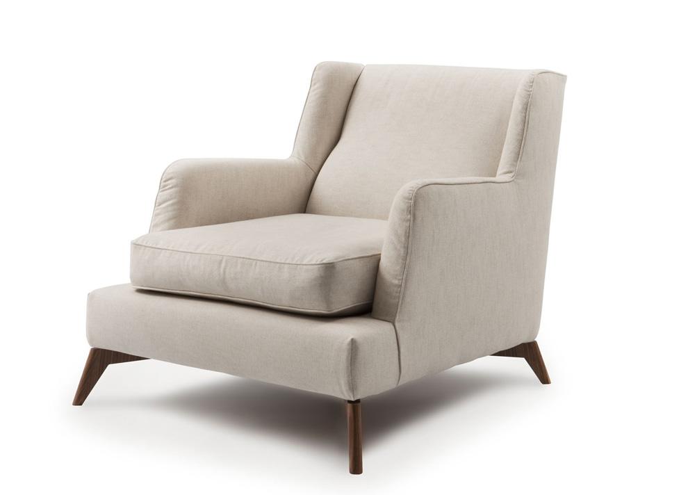 Handmade in Italy, the frame is solid wood, and the cushions are made with foam which is covered with a layer of feathers, with feet in either Canaletto walnut or varnished metal in black grey.