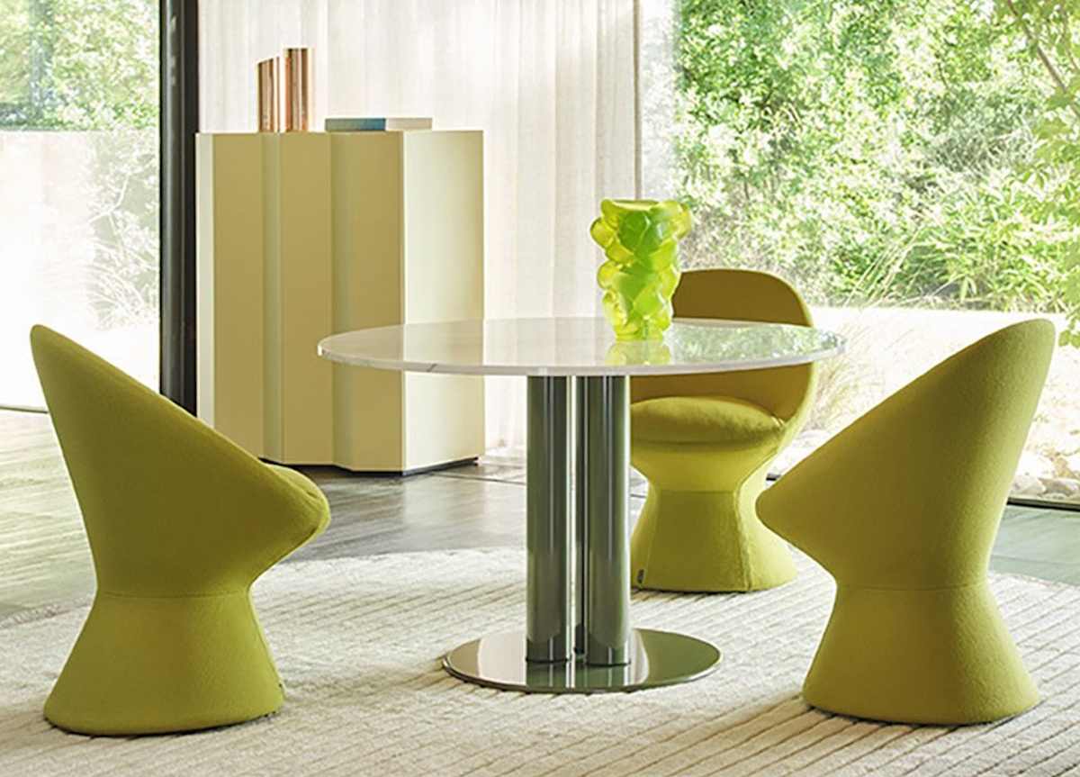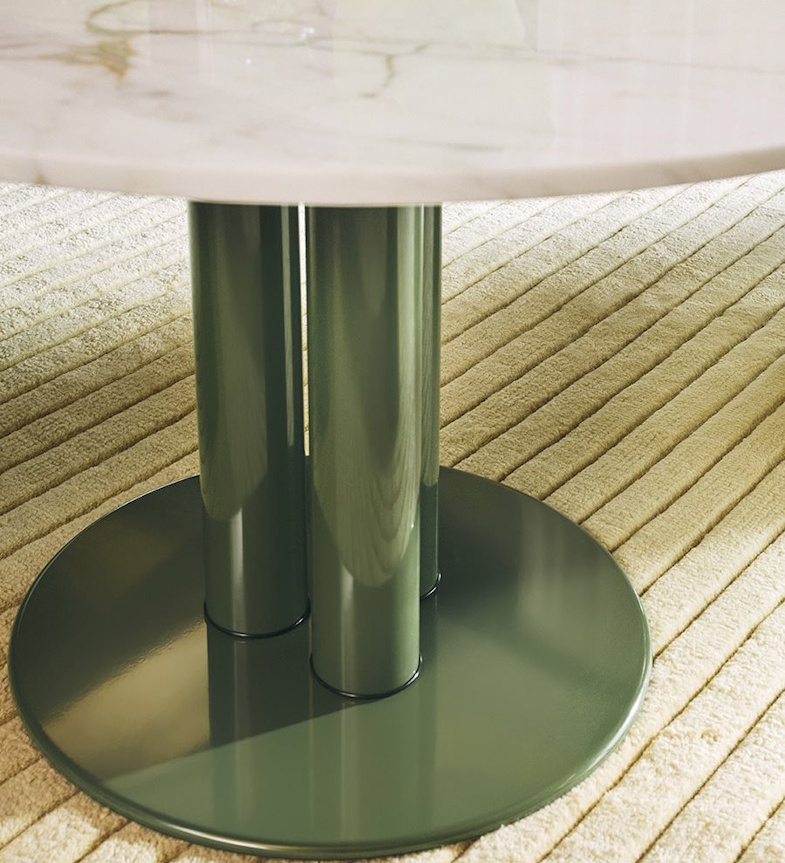The beautiful Zanotta Marcuso round dining table pays tribute to the legacy of Marco Zanuso, here his original table is reinterpreted through a contemporary use of colour and materials. Defined by refined proportions and elegant lines, it brings expressive character to modern dining spaces, seamlessly blending timeless form with a fresh, updated aesthetic.