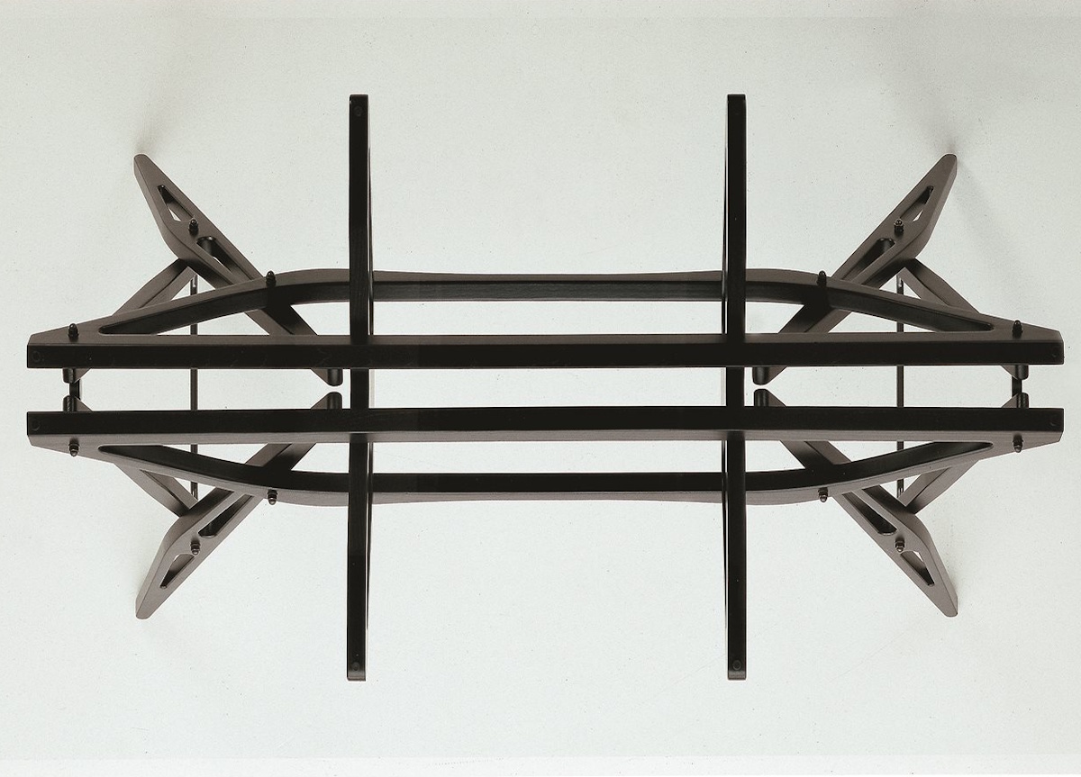 The table features articulate and complex shapes where every element slots together through a precise (and custom-designed) metal joint system. A true masterpiece, the Reale table was created with a compact skeleton like base with either a glass or marble table top.