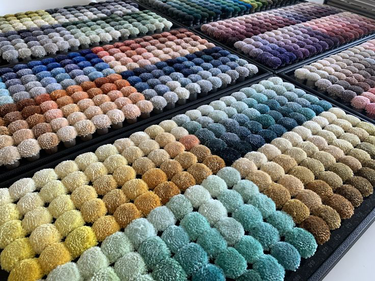 The colours were chosen from our enormous library of available pom-poms - though of course we can produce this design, or a similar one, in any colour combination you want, to any size needed. The design is not fixed either, we can create any design you like.
